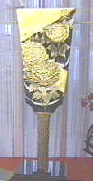 左が、扇、右が、鶴のデザインです。 福嶋さんは、10月のするがクリエイティブ作品展より にも出品していただきました。あのときは、ちょっと変わったモノと言うことでお願いしましたが、 今回は、本格的な蒔絵を出してもらいました。 お正月らしく、おめでたい柄です。 |