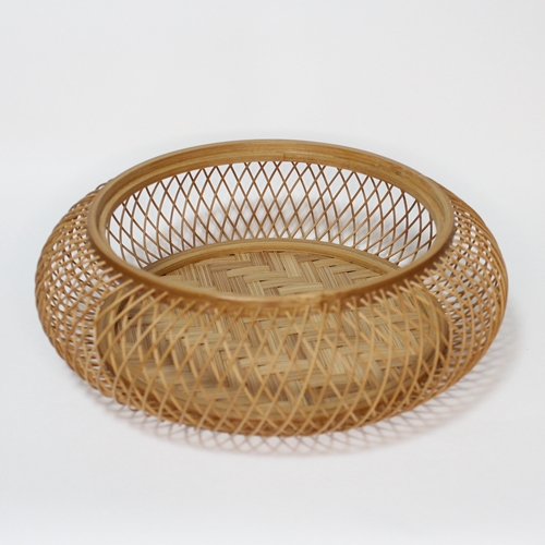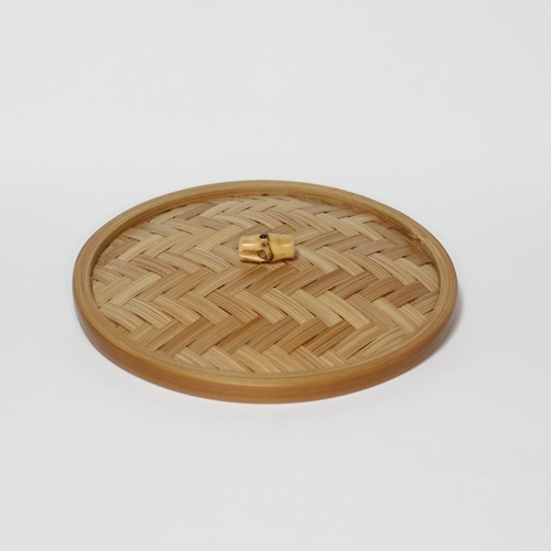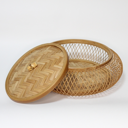 本体は、矢来(やらい)という技法で竹ひごを外と内側に組んだ、繊細かつしっかりした菓子器ですよ。