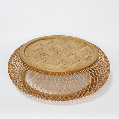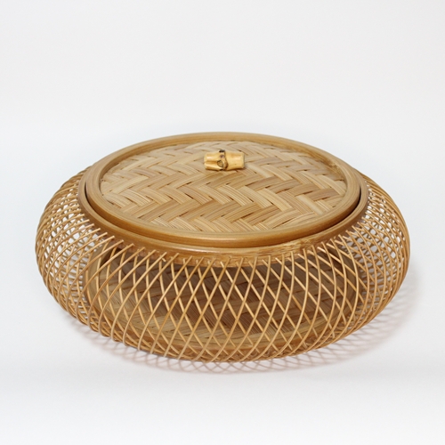 本体は、矢来(やらい)という技法で竹ひごを外と内側に組んだ、繊細かつしっかりした菓子器ですよ。